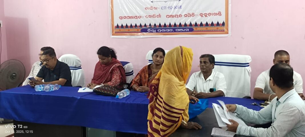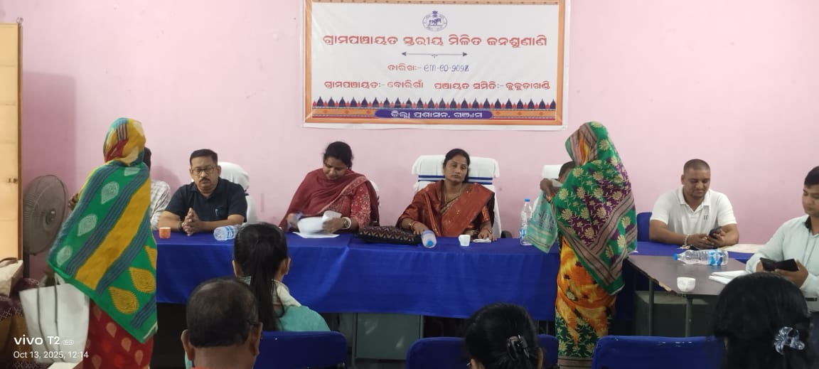 କୁକୁଡ଼ାଖଣ୍ଡି,୧୪/୧୦(ଇ .ରଞ୍ଜନ):-କୁକୁଡ଼ାଖଣ୍ଡି ସରକାରଙ୍କ ନିର୍ଦ୍ଦେଶାନୁସାରେ ସୋମବାର ବୋରିଗାଁ ପଞ୍ଚାୟତ କାର୍ଯ୍ୟାଳୟ ରେ ପଞ୍ଚାୟତ ସ୍ତରୀୟ ଅଭିଯୋଗ ଶୁଣାଣୀ ଶିବିର ଅନୁଷ୍ଠିତ ହୋଇଛି। ସରପଞ୍ଚ ସସ୍ମିତା ସାହୁ ଙ୍କ ସହଯୋଗରେ ଆୟୋଜିତ ଏହି ଶିବିରରେ ବିଭିନ୍ନ ବିଭାଗର ଅଧିକାରୀମାନେ ଉପସ୍ଥିତ ରହି ଗ୍ରାମବାସୀଙ୍କ ସମସ୍ୟା ଶୁଣିଥିଲେ।ଏହି ଶୁଣାଣୀ ରେ ବିଡିଓ ପଲ୍ଲବୀ ସ୍ବାଇଁ,ତହସିଲଦାର ରାଜକିଶୋର ପଟ୍ଟନାୟକ, ଅତିରିକ୍ତ ବିଡିଓ ସୁପ୍ରଭା ସାହୁ, ସାମାଜିକ ସୁରକ୍ଷା ଅଧିକାରୀ ମନୋଜ ପ୍ରଧାନ,ସହକାରୀ ଯନ୍ତ୍ରୀ ଅନୁରାଗ ରଥ, ଶିକ୍ଷା ଅଧିକାରୀ ସନ୍ତୋଷ ମହାପାତ୍ର, ସମିତି ସଭ୍ୟ ସନ୍ତୋଷ ସାହୁ, ପଞ୍ଚାୟତ କାର୍ଯ ନିର୍ବାହୀ ଅଧିକାରୀ ପି ରାଜେଶ ରାଓ ଓ ସରପଞ୍ଚ ପ୍ରତିନିଧି ବାବୁଲା ସାହୁଙ୍କ ସମେତ ଅଙ୍ଗନବାଡ଼ି କର୍ମଚାରୀ, ଆଶା କର୍ମୀ, ଏମବିକେ, ପଶୁଚିକିତ୍ସାଳୟ ଡକ୍ଟର ଙ୍କ ସମେତ ବିଭିନ୍ନ ବିଭାଗର ଅଧିକାରୀ ମାନେ ଉପସ୍ଥିତ ରହିଆସିଥିଲେ।