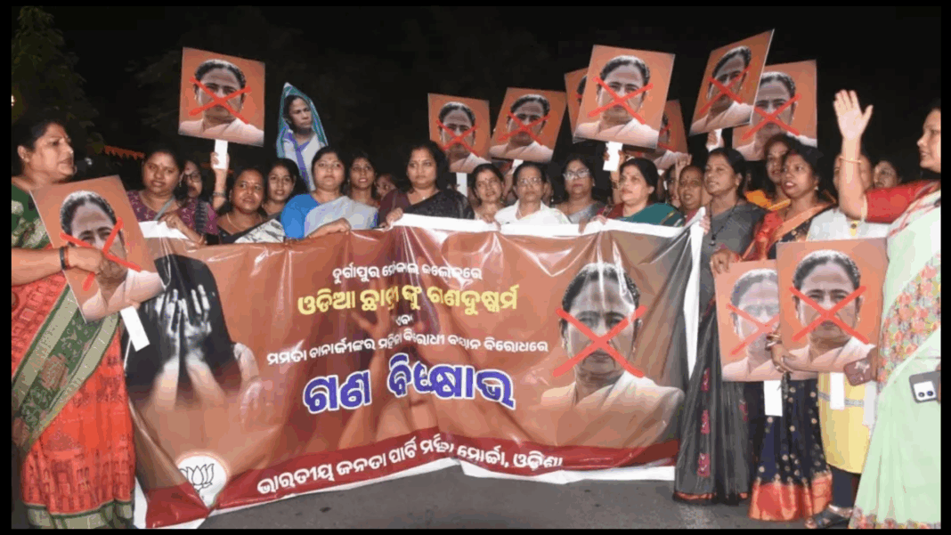 ଭୁବନେଶ୍ୱର,୧୪/୧୦(କଳିଙ୍ଗ ଜାଗରଣ ବ୍ୟୁରୋ):-ଭୁବନେଶ୍ୱର ରାଜ୍ୟ ମହିଳା ମୋର୍ଚ୍ଚା ପକ୍ଷରୁ ପଶ୍ଚିମବଙ୍ଗ ମୁଖ୍ୟମନ୍ତ୍ରୀ ମମତା ବାନାର୍ଜୀଙ୍କ ମହିଳା ବିରୋଧୀ ଅଭିମୁଖ୍ୟକୁ ଅତ୍ୟନ୍ତ ନିନ୍ଦନୀୟ ବୋଲି କହିବା ସହ ଏହାର ପ୍ରତିବାଦରେ ଭୁବନେଶ୍ୱର ରାମ ମନ୍ଦିର ଛକରେ ମମତା ବାନାଜୀଙ୍କ ବିରୋଧରେ ବିକ୍ଷୋଭ ପ୍ରଦର୍ଶନ କରାଯାଇଥିଲା ।ଏବଂ ଏହି ବିକ୍ଷୋଭରେ ମହିଳା ମୋର୍ଚ୍ଚାର ଅନେକ କାର୍ଯ୍ୟକର୍ତ୍ତା ଉପସ୍ଥିତ ଥିଲେ।
