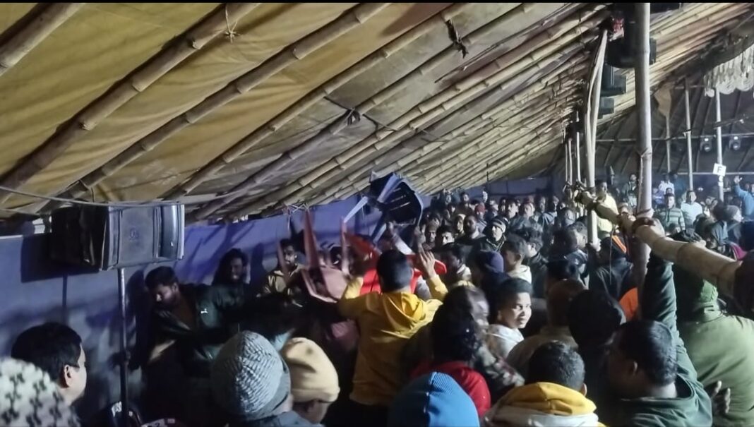 କୁକୁଡାଖଣ୍ଡି,୨୨/୧୨(ଇ ରଞ୍ଜନ):-କୁକୁଡାଖଣ୍ଡି ସଦର ଥାନା ଅଧୀନ ବୁଢ଼ୀଘରା ଛକରେ ଚାଲିଥିବା କୋଣାର୍କ ଗଣନାଟ୍ୟ ର ଚତୁର୍ଥ ଦିବସ ରେ ଟିକଟ ପାଇଁ କିଛି ଦର୍ଶକ ଓ ଆୟୋଜକ ଙ୍କ ମଧ୍ୟରେ ଗଣ୍ଡଗୋଳ ହୋଇଥିବା ନେଇ ଭିଡିଓ ସୋସିଆଲ ମିଡ଼ିଆ ରେ ଭାଇରାଲ ହେଉଛି। କିଛି ଦର୍ଶକ ଙ୍କୁ ବସିବା ପାଇଁ ଚେୟାର ନା ମିଳିବାରୁ ଏହିପରି ଅପ୍ରୀତିକର ପରିସ୍ଥିତି ସୃଷ୍ଟି ହୋଇଥିବା ଜଣାପଡିଛି।କିଛି ମାସ ତଳେ ସେହି ଯାତ୍ରା କମିଟି ରେ ନିଶା ମହାରଣା ନ ଆସିବାରୁ ଦର୍ଶକ ମାନେ ମାନେ ଚେୟାର ଫିଙ୍ଗିଥିଲେ। ଯାତ୍ରା ରେ ଏହିପରି ବିଶୃଙ୍ଖଳା ସୃଷ୍ଟି ହେଉଥିବା ରୁ ଉକ୍ତ ଯାତ୍ରା କମିଟି କୁ ଯାତ୍ରା ପାଇଁ ଅନୁମତି ନଦେବାକୁ ବୁଦ୍ଧିଜୀବୀ ମାନେ ମତପ୍ରକାଶ କରିଛନ୍ତି। ଗଣ୍ଡଗୋଳ ନେଇ ଆୟୋଜିତ କମିଟିର ପ୍ରତିକ୍ରିୟା ମିଳିନଥିବା ବେଳେ ସଦର ଏସଡିପିଓ ଶୁଭ୍ରାଂଶୁ ପରିଡା କହିଛନ୍ତି ଏନେଇ କିଛି ଅଭିଯୋଗ ଆସିନାହିଁ।